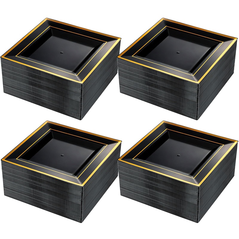 Versatile for Any Meal: whether you’re craving a little snack to satiate your appetite or a big meal to fulfill your cravings, our plastic disposable plates will come up big! They can meet the need of those who like to hold parties, also can be applied for many occasions, such as wedding, anniversary, baby shower, birthday, graduation, banquet, picnic, holiday, formal dinner or daily meals. Disposable or Reusable: these square plastic plates are disposable and reusable, you can just throw the square plastic plates into the trash can after the party, don’t have to worry about washing dishes If you may need to use these disposable tableware again, you can easily clean them, then air dry them, make them look new for the next party. Elegant Design: our black square plastic plates have a certain depth to ensure that the food soup does not spill out. The side of the plate is inlaid with a gold rim, add a touch of elegance to your party decoration, easy to catch the guests’ eyes and bring the happiness and pleasure to you and your guests. These fancy disposable plates are perfect for pairing with a variety of gold cutlery for a stylish and classic look. Quality Construction: resistant to breaking, bending and snapping, these disposable square salad plates are expertly crafted using heavy weight plastic construction, no toxic, BPA free, strong and sturdy, not easy to scratch and can be applied for a long time You can use these square plates to eat any food you want. Super Convenient Set: you will receive 100 pieces plastic dessert plates, each dessert plate measures 6.4 inches, large enough to hold appetizers, salads and desserts at your party, suitable for simple or grand parties, these disposable dinner plates have everything you need to make your after-party clean up a breeze.