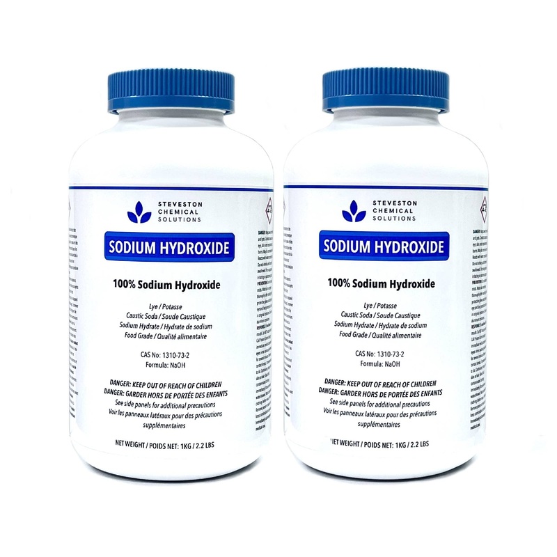 2 pack of 1kg jars (with child resistant safety lids) of 100 Sodium Hydroxide Micropearls. Also known as Lye Caustic Soda NaOH. This product is food technical grade. Sodium Hydroxide is commonly used to make soap, is an ingredient in many drain and oven cleaners, and is used to give pretzels their crispy crust. Product of Canada. Ensure to carefully follow safety handling instructions on product label and QR Code to SDS Sheet.2 x 1kg jars (2kg total). Used to make soap, is an ingredient in many drain oven cleaners, and to give pretzels their crispy crust. Product of Canada. Food Technical Grade Kosher. Packaged with child resistant safety lids. 100 Sodium Hydroxide Micropearls (Lye Caustic Soda NaOH).