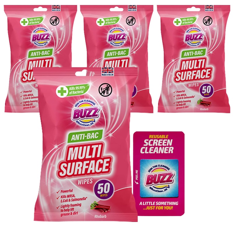 Free Buzz Merch – This manufacturer bundle includes an exclusive Buzz brand reusable microfibre cleaner for your phone. Just stick it on the back of your phone and peel off to use when you need it!. Versatile Buzz antibacterial wipes surface can be used all around the home for quick and easy results whatever the need. Great on kitchen surfaces for removing dirt and grime, or prior to food preperation on a counter. Our anti bac wipes come with a resealable opening so they remain fresh for the next time you need them. 40 Bigger, Moisture-Rich Wipes Buzz multipack wipes antibacterial surface cleaning are a whopping 40 bigger than before, meaning you get more value and performance out of each and every wipe. Killa 99.9 of All Bacteria This cleaning wipes antibacterial kill 99.9 of all bacteria including MRSA, E.coli Salmonella. Our antiseptic wipes are safe to use on a variety of surfaces. Ultra Strong, Anti Bacterial Wipes – Buzz antibacterial wipes are designed to provide excellent cleaning performance without the fuss. They won’t fall apart easily and will provide consistent and effective anti bac cleaning results.