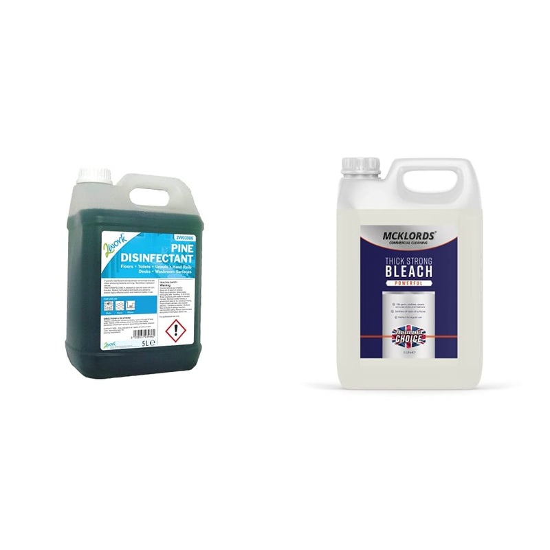 2WORK 2W03986 5 L Pine Disinfectant, Pack of 12Work Pine Disinfectant 5 Litre 204 2W03986McKLords Thick Strong Bleach, 5 LitreStrong bleach, thickened to increase surface contact time. Ideal for use in toilets, urinals, sinks, drains etc. Sanitises all types of surfaces. Kills germs, sanitises, cleans, removes stains and freshens.Product 2: Perfect for regular use. Product 2: Sanitises all types of surfaces. Product 2: Kills germ, sanitises, cleans, removes stains and freshens. Product 2: Powerful thick strong bleach. Product 1: General Cleaning. Product 1: Ideal for home and office use. Product 1: High Quality. Product 1: Brand Original.