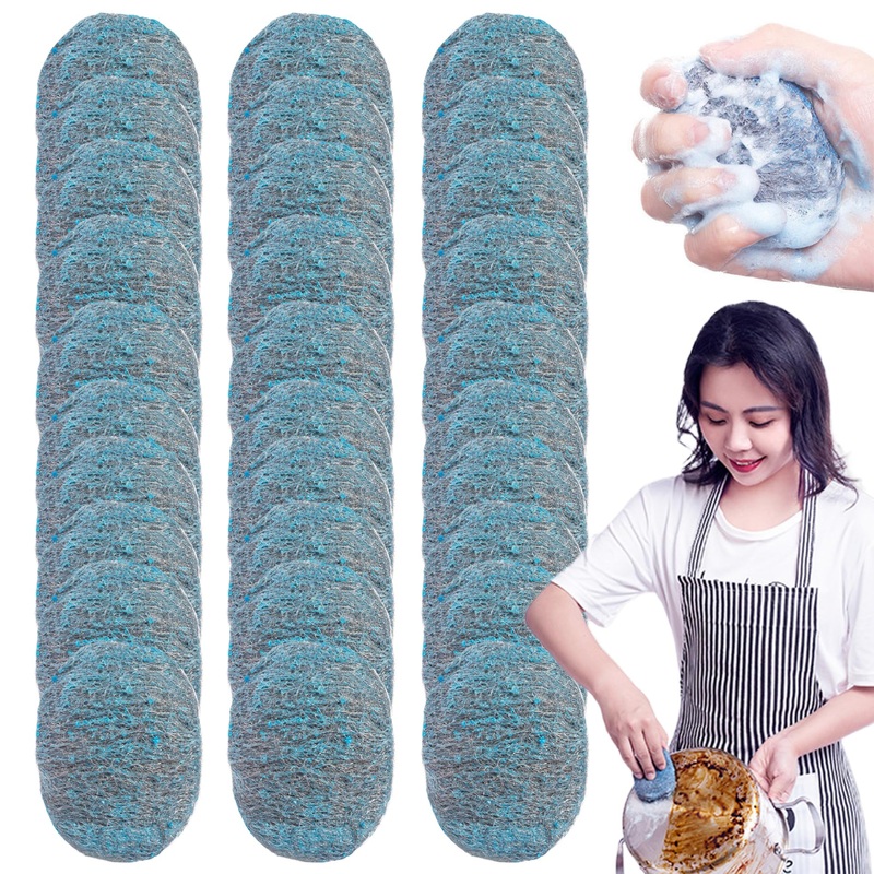 Description: Our steel wool pads are composed of natural coconut soap powder and extra fine low-carbon steel wire. No detergent is needed and can be used with water. Rich foam and not easy to damage the skin surface. The soft, skin-friendly material removes stains quickly while protecting your hands. This steel wool scrubber can not only be used for daily cleaning of kitchen utensils, but also suitable for tiles, range hoods or outdoor cleaning. It is a multi-purpose washing ways and can be widely used in daily life scenes. Our steel wool pad can be reused again and again. Great for cleaning cast iron and stainless steel pots and pans. Also great for outdoor use, such as cleaning BBQ grill pans. Features: Steel Wool Pads Color: Blue. Material: Coconut Soap Powder Steel Wire. Size: about 6x7cm 2.36×2.76inch. Thickness: 2.5cm 0.98inch. Note: Manual measurement, please allow slight errors on size. The colors may exist slight difference due to different screens. Package Including 30 Steel Wool PadsFresh and Clean: This steel wool soap pads not only cleans the stains on the surface of your items. These pre-soaped Steel Wool Pads remove dirt, leaving your kitchen smelling fresh and clean, keeping your place looking clean and tidy. Reusable: Our steel wool pad can be reused again and again. Great for cleaning cast iron and stainless steel pots and pans. Also great for outdoor use, such as cleaning BBQ grill pans. Cleaning Material: Our steel wool pads are composed of natural coconut soap powder and extra fine low-carbon steel wire. No detergent is needed and can be used with water. Rich foam and not easy to damage the skin surface. The soft, skin-friendly material removes stains quickly while protecting your hands. Simple Operation: Our steel wool soap pads are simple and quick to use and suitable for all kinds of people. Just dip the steel wool pad into water and rub it into foam, wipe it back and forth on the surface of the items that need to be cleaned, wipe it with a rag or rinse it with water. Multi-Purpose: This steel wool scrubber can not only be used for daily cleaning of kitchen utensils, but also suitable for tiles, range hoods or outdoor cleaning. It is a multi-purpose washing ways and can be widely used in daily life scenes. It is a must-have small item for the home. tool.
