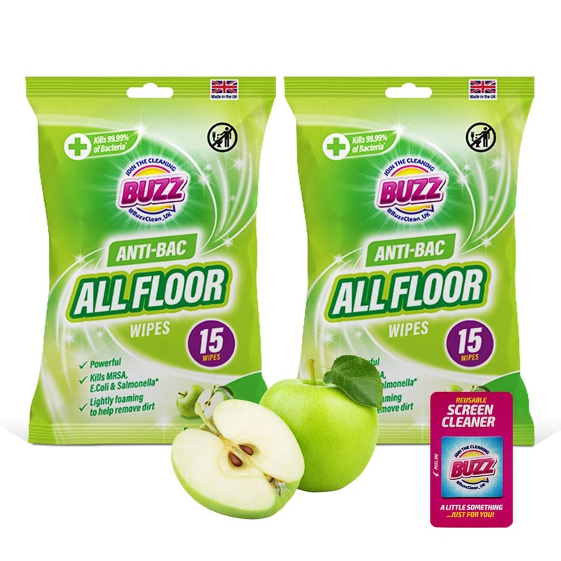 Free Buzz Merch – This Manufacturer Bundle Includes An Exclusive Buzz Brand Reusable Microfibre Cleaner For Your Phone. Just Stick It On The Back Of Your Phone And Peel Off To Use When You Need It!. Kills 99.9 Of All Bacteria This Cleaning Wipes Antibacterial Kill 99.9 Of All Bacteria Including Mrsa, E.Coli Salmonella. Our Antiseptic Wipes Are Safe To Use On A Variety Of Surfaces. Great Value Pack – With 2 Packs Of Buzz Floor Wipes Included, You Will Be Getting A Total Of 40 Extra Large Wood And Laminate Floor Wipes. Each Pack Has A Resealable Area So Your Wipes Stay Fresh Until You Need Them. Cleans Lightly Polishes – Buzz Floor Cleaning Wipes Have Been Engineered Specifically For Use On Flooring. They Pick Up Dust, Clean, Lightly Polish The Surface And Have Been Designed To Quickly Dry On The Surface. Ultra Strong Wipes – Buzz Floor Cleaning Wipes Are Designed To Provide Excellent Cleaning Performance Without The Fuss. They Won’T Fall Apart Easily And Will Provide Consistent And Effective Floor Cleaning Results. Suitable For All Floor Types Including Wood And Laminate.
