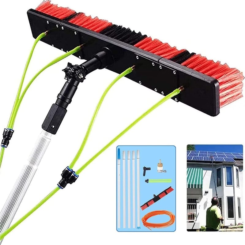 Are you still awkwardly trying to climb the ladder to clear the high windows! With this window cleaning brush, you can reach the window from the ground faster and safer than ever. This is a fully scalable water column cleaning system that can be connected to a pure water system or garden hose. Features: – Multifunctional water spray brush, high altitude cleaning. – Using high-density reinforced aluminum alloy, high hardness, not easy to rust, and light weight. It will not bend even if it is 10 meters long. – The steel buckle is fixed for easy installation and disassembly. – Pure copper switch more durable. – Universal design, the brush head can rotate freely. – Sponge non-slip handle Product parameters: Material: aluminum carbon fiber Water supply hose: 20M Scope of use: window cleaning, photovoltaic panel cleaning, bus exterior cleaning, large vehicles, trucks, trucks, caravans, boats, etc. Packing list: Telescopic rod 1 brush head 1 20 meters water pipe 1 universal joint 1 Faucet connector 1 trap 1 storage bag 1 Service: If you have any questions, please email us, we will reply to you within 24 hours and provide you with the best service.50cm Brush Head With 6m Pole Solar Panel Brush For Exterior Glass Cleaning.Steel buckle fixed, perfectly closed, easy to install, easy to disassemble. Fix the brush head panel or glass plate at a certain angle. The universal design allows the brush head to rotate freely so that you can easily solve the dust and stains in every corner. High-quality materials:Telescopic Window Cleaning Poles made in High-density reinforced aluminum alloy, high hardness, not easy to rust, light weight. The single pole weighs only 0.25kg and can be easily used by the elderly and women. Very durable and soft bristles ensure safe surface cleaning. Telescopic window cleaner have water hook-up capability for simultaneous scrubbing and rinsing. 20 m (65 ft) water pipe with quick connect.The Faucet connector is quick to access water and is easy to use anywhere. 5-12m Extendable Window Cleaning Brush:Our water-fed brushes work on all rooftop panels no matter the quantity or distance from the ground. The Solar Brush comes in lots sizes with adjustable lengths for your cleaning needs. Panel Cleaning for Your Home:Keep your rooftop solar panels operating at their while saving time. We provide residential panel cleaning brushes so homeowners and solar cleaner can take control for easy maintenance.