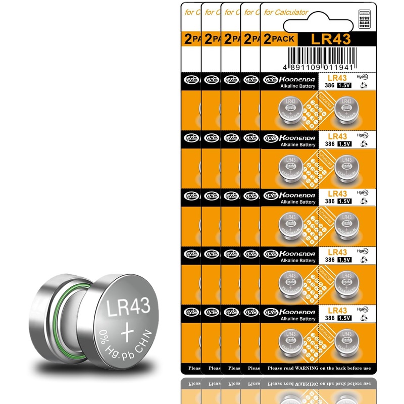Product Specification: Product name: lr43 watch battery; Material: Metal; Chemistry: Zn/MnO2; Size:11.6*4.3(mm); Weight:About 0.35g; Nominal Voltage :1.55V; Cut Off Voltage :0.90V; Standard capacity:110mAh; Short Circuit Current: 0.3A; Standard Load Current: 0.3A; Shelf life:3 Years; Storage & Working Temperature: <45?; Attentions: 1. Never charge the battery,otherwise cause leakage or explosion; 2. When insert battery, pls make its positive and negative terminals properly aligned with the corresponding marks on the equipment; 3. Keep away from fire,Keep the battery in a dark, cool and dry place; 4. Keep away from children to avoid causing personal accidents; 5. Don't put these batteries together,otherwise it will cause a short circuit and affect the life of the battery. Package Include: 50 x 386 watch battery.Warmly Tips:Please keep batteries in dry and cool place;Do not recharge or dispose off in fire;Insert the battery in correct +/- end and avoid short-circuit. Multi-purpose:Digital thermometer, watches, cameras, cigar lighter, laser pointers, Keychain flashlight, LED light sticks, calculators, clocks, talking books, Christmas ornaments, pedometer, bike computer, Car Security Alarm, Keyless Car Remotes, calculators , remote controls , toys and so on. What You Can Get:50PCS lr43 batteries.Ag12 button cell battery has stable voltage and high discharge efficiency, which can effectively protect your equipment. Battery Prameters:Nominal Voltage: 1.55V;Capacity: 110mAh,Size:11.6*4.3(mm),Battery Cell Composition:Alkaline,0% mercury,3 years shelf life,long-lasting power,safe and durable. Multiple Compatibility: 386, LR43, AG12, 301, L1142, LR1142, SR1142,SR43, SR43W, D301, D386, GP86A, G12, G12A, V12GA ,SG12, 186, 186-1, 386A, D386, V386, GP386, LR1142, SR1142, S1142E, 260, 301A, RW84, GP86A, 1176A, 280-41, SB-B8, LR1144, RW44, SR1142PW, SR43H, BSR43H.
