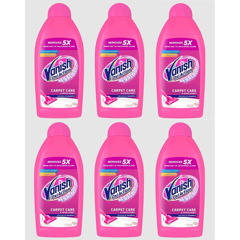 6 x Vanish Oxi Action Carpet Care & Upholstrey Cleaner 450ml Removes 5x more dirt vs vacuuming alone*. Give your carpets & upholstery a deep clean over large areas, fighting stains and odours that are on the surface or hidden within the fibres. A simple bu