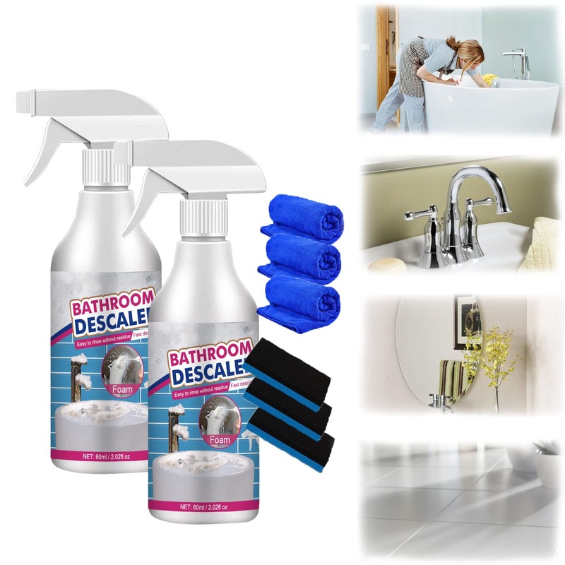 60ml Bathroom Descaler Spray Stubborn Stains Cleaner Bathroom Descaler Spray Bathroom Descaler Cleaner All Purpose Bubble Cleaner Foam Spray (2PC)