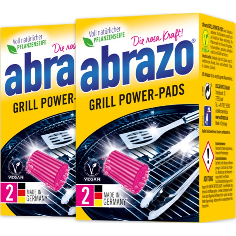 The unique all-round full saponification of the abrazo cleaning pads ensures appetizing hygiene in the kitchen. Even more effective thanks to the new pink power formula. The ideal cleaning sponge with extra soap power for a top-notch shine. Manufacturer: OSCAR WEIL GmbH. Tramplerstr. 27 31, 77933 Lahr, Germany.Antibacterial.