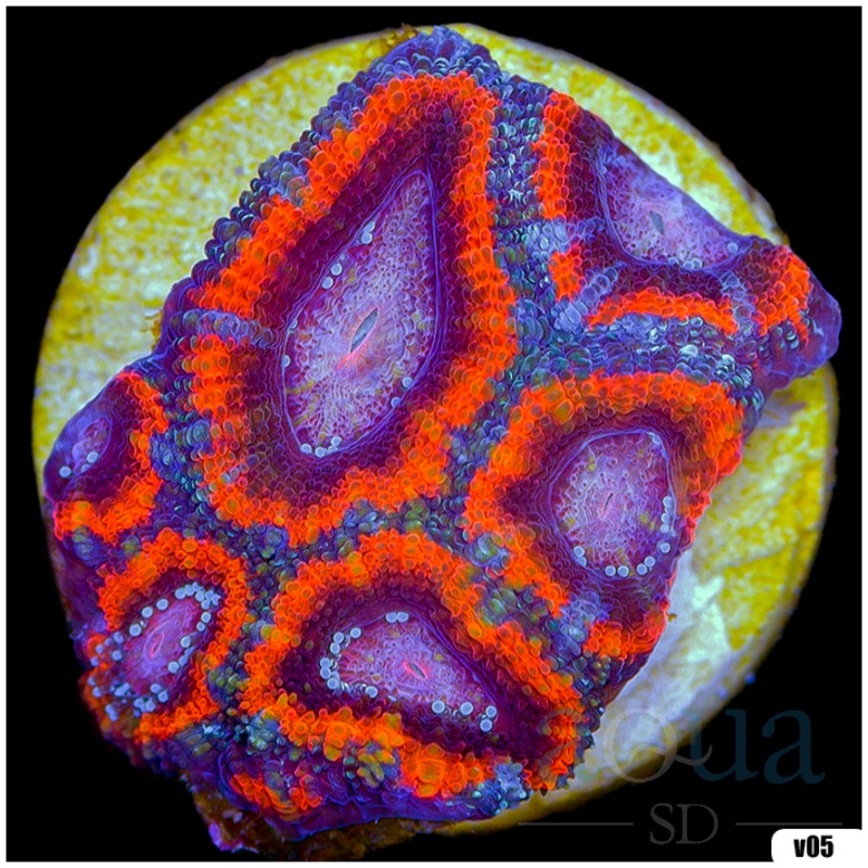 Acans are an LPS coral that come in a wide variety of colors and patterns. Acans are a fairly easy to care for coral. They require low to moderate light, low to moderate flow and appreciate an occasional feeding.