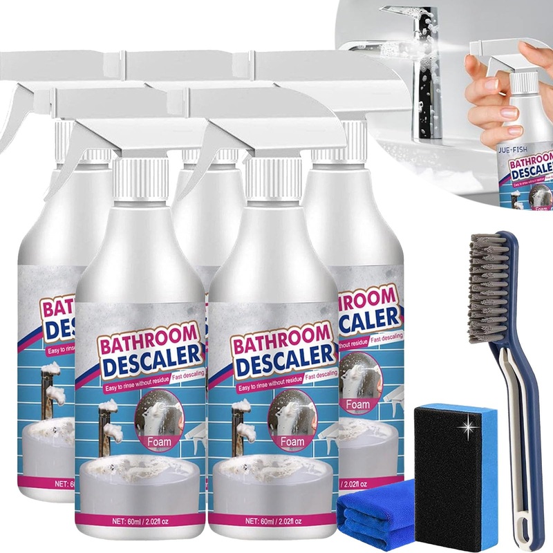 Features: Foam Is Abundant Easy Penetration Various Surfaces Fresh Scent Specifications: Product Name: Stubborn Stains Cleaner Color: White Material: Liquid Capacity: 60ml Shelf Life: 3 years Uses: Kitchen, bathroom, degreg, rust removal Package Includes: 1 2 3 5 PCS Bathroom Descaler Cleaner 1 PCS Cleaning Sponge 1 PCS Cleaning Cloth Note: 1. Due to manual measurements, please allow slight measurement deviations 2. Due to the different display and lighting effects, the actual color of the item may be slightly different from the color displayed on the pictureWide Application: Acssart cleaner is widely used in toilets, sinks, washbs, tile walls, floors, glass, mirrors, bathtubs, faucets, etc. Great for bathroom and kitchen cleaning, saving you a lot of time and effort. Versatile Material Compatibility: Descaler bathroom cleaner, safe for use on a variety of materials, including leather, PVC, rubber, metal, glass, vinyl, plastic, and fiberglassideal for all-purpose cleaning. Gentle Yet Effective Formula: Bathroom descaler cleaner jue-fish concentrated formula emulsifies oil, creating a rich lather that is safe for hands and surfaces, leaving a non-greasy matte finish. Quick and Effective Removal: Stubborn stains cleaner removes tough stains in seconds! Stubborn cleaner spray, formulated to penetrate tough grease grime, leaving you with clean kitchen surfaces and appliances in seconds. Bathroom Descaler Cleaner: Acssart bathroom cleaner is a penetrating foam cleaner that easily dissolves grime, stains, soap scum, etc. Makes deep cleaning easier and keeps the bathroom sparkling.