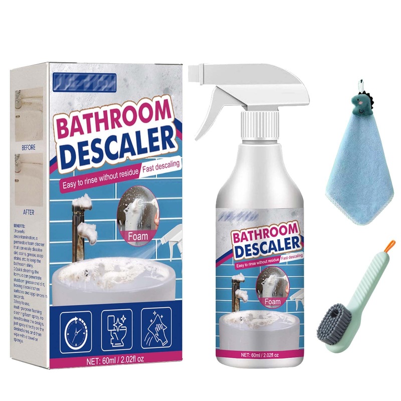 Acssart Bathroom Descaler, Acssart Foam Cleaner, 1 2 3 PCS Acssart Cleaner, All Purpose Bubble Cleaner Kitchen Deep Cleaning Spray, All Purpose Rinse Free Cleaning Spray Features: –with long-lasting results –Cleansing care to awaken the radiance of the past –Quickly decompose –Suitable for various surfaces –Gentle formula that won’t damage surfaces How to Use the Acssart Bathroom Cleaner: 1. Spray Directly on Desired Area 2. Wipe with a Towel or Sponge Until the Stain is Removed 3. No Need to Rinse. Simply Wipe off the Foam with a Towel After Cleaning Specifications for the Acssart Bathroom Cleaner: Product Name:Bathroom Descaler Foam Cleaner Color: White Material: Liquid Capacity: 60ml Shelf Life: 3 Years Uses: Kitchen, Bathroom Package Includes: 1 2 3 PCS Acssart Bathroom Descaler 1PC Towel 1 PC Brush Note: 1. Please allow slight dimens error due to manual measurement.Thank you for your understanding ! 2.Due to different monitors and different lighting, the picture may not show the actual color of the item. Thank you for your understanding?Wide Application?The Acssart Bathroom Cleaner is widely used in bathroom, sinks, washbs, tile walls, floors, glass, mirrors, bathtubs, faucets and more. ?Easy to Use?Our Acssart Bathroom Descaler comes in a convenient spray bottle for easy use. Just spray it on the stained surface, wait 5-10 minutes for the bubbles to work, and then wipe away for a spotless, stain-free finish. ?Quick Clean?Our Acssart Bathroom Descaler bring you a new look, Enjoy a fresh and clean bathroom without worry. ?Gentle Yet Effective Formula?This concentrated formula easily emulsifies oil and dirt, creating a dense lather on contact that’s safe for hands and surfaces. It leaves behind a non-greasy matte finish, preventing fading, discoloration, or cracking. ?Gentle Ingredients?Our Acssart Bathroom Descaler is made with mild ingredients It is suitable for a variety of materials including glass, ceramic, porcelain and stainless steel.