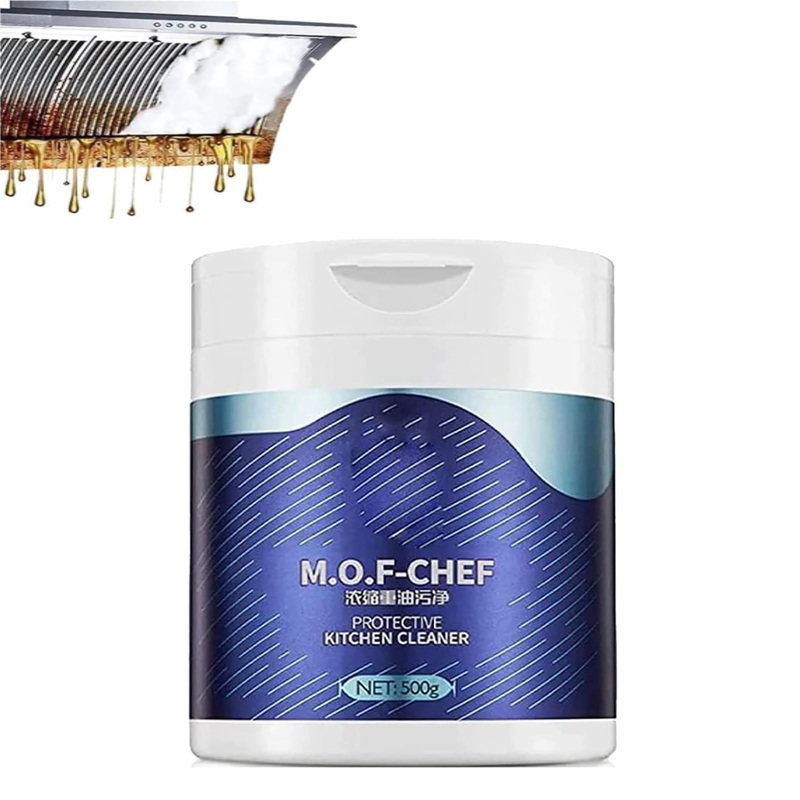 Applicable scope: Suitable for heavy oil stains on multiple surfaces in the kitchen, such as range hoods, exhaust fans, gas stoves or stoves, kitchen glass, and heavy oil stains on the sink. It is also suitable for surface oil stains on kitchen utensils such as stainless steel, ceramic tiles, enamel, and baking paint. Regular scrubbing can keep the kitchen clean and hygienic. This product can only be used for stainless steel, ceramic tiles, glass, plastic (oil stains on aluminum alloys, marble, and paint surfaces cannot be wiped) Usage: 1. Severe oil pollution: Mix hot water in a ratio of 1:15 and it can be used. 2. General oil pollution: Mix hot water in a ratio of 1:15-20 and it can be used. 3. Diluting this product with boiling water yields better results. Products that cannot be soaked can be mixed and directly applied or sprayed. After achieving the desired effect, rinse with clean water. Specification: Product: M.O.F Chef Cleaner Powder Capacity: 500ml bottle Shelf life: 3 years Usage: Kitchen, Bathroom, Oil and Rust Removal Package Includes: 1 2 pcs X M.O.F Chef Cleaner Powder Notes: 1.Due to different manual measurements, please allow for slight size differences. 2.Due to differences in different monitors, the picture may not reflect the actual color of the item.Broadly Used: This kitchen cleaning powder can remove stubborn grease and dirt from various surfaces, such as pots, pans, stoves, bottom of pots, floors, sinks, faucets, tiles, and kitchen vents. It is easy to use and can make your kitchen shiny and clean. Excellent Stubborn Grease Cleaner: With our kitchen cleaning powder, you can clean stubborn grease without damaging your hands or surface. It is safe, fast, and effective, keeping the kitchen surface spotless. Natural Ingredients: Our kitchen cleaning powder adopts the most advanced emulsification technology, which can quickly dissolve and remove oil and dirt. It is formulated from natural ingredients, gentle and effective, making the surface spotless and protected. Advanced Cleaning Solution: This kitchen cleaning powder can penetrate stubborn grease and dirt, and remove them within seconds. It also comes with gloves, brushes, and wipes, making your cleaning work easier and safer. Multifunctional Solution: Use our powerful cleaning powder to effectively remove stubborn grease, burns, and dirt in the kitchen. Perfectly meeting your car interior cleaning needs, making it spotless and refreshed.