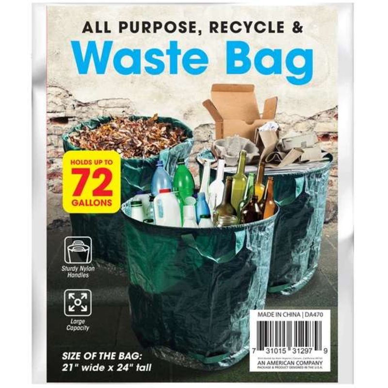 All-Purpose Recycle and Waste Bags are crafted with durability and sustainability in mind. The spacious capacity accommodates significant recyclables and waste, reducing frequent trips to the bin. Perfect for paper, plastic, glass, or organic waste, it suits households, offices, and classrooms. Sturdy handles and reinforced seams ensure durability, while the water-resistant exterior prevents leaks. Size: 21\