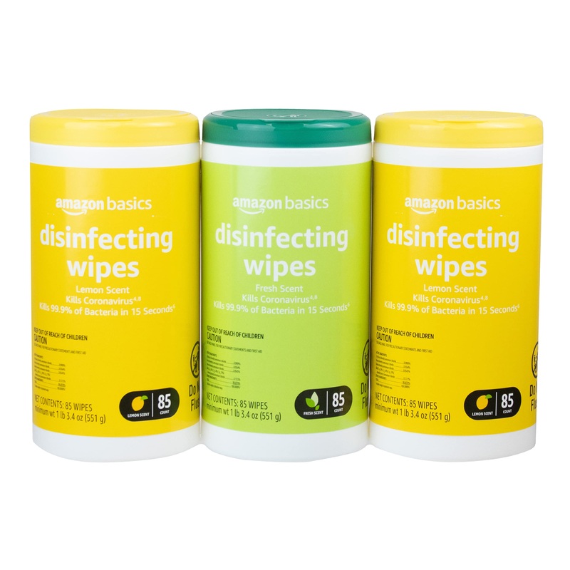Kills cold & flu virus*(4), kills (5) Escherichia coli (E. coli), kills (5) Salmonella enterica (Salmonella), and kills the virus (4,8) that causes COVID-19. These thick wipes kill 99.9% of bacteria in 15 seconds, and conveniently clean surfaces such as countertops, door knobs, light switches, and remotes. Multipacks allow you to keep canisters in the kitchen, bathroom, office, car, or classroom./br/brSatisfaction Guarantee: Were proud of our products. If you arent satisfied, well refund you for any reason within a year of purchase. 1-877-485-0385. Use on washable hard, nonporous surfaces: tubs, showers, telephones, stovetops (7), doorknobs, kitchen countertops, sinks, exterior toilet bowl surfaces, toys (3), non-wooden outdoor patio furniture. Do not use on unpainted wood, natural marble or brass. Thick wipes for tough messes great for clean up or touch up cleaning. Kills 99.9% of bacteria in 15 seconds. Kills cold & flu virus*(4), kills (5) Escherichia coli (E. coli), kills (5) Salmonella enterica (Salmonella). Kills the virus (4,8) that causes COVID-19. Same product, new look, now with 10 more wipes per canister two 85-count canisters of Lemon Scent & one 85-count canister of Fresh Scent 255 disinfecting wipes total this product is identical in manufacturing and formulation to the Solimo brand./br/brGTIN: 195515023993 842379149054. Best Sellers Rank: See Top 100 in Our Brands. Item Form: Wipes. Package Information: Canister. Sheet Count: 85. Brand: Basics. Scent: Lemon, Fresh. Country of Origin: USA. : B07F246YG1. Manufacturer: CPB – VPC -Rockline Industries. UPC: 195515023993 842379149054. Item model number: 89-225LFL851J. Product Dimensions: 12.75 x 4.25 x 8.28 inches 4.56 Pounds.