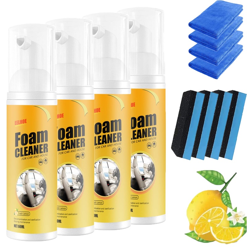 Amplesunshine Foam Cleaner Strong Decontamination Cleaners Spray Multifunctional Car Foam Cleaner Powerful Stain Removal Kit Foam Cleaner for Car and House Lemon Flavor (4Pcs 60ML)