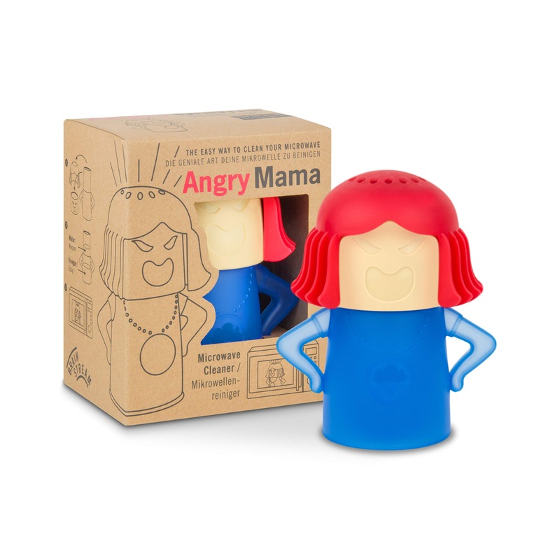 Angry Mama takes care of the messy work. All she needs is a little vinegar, water, and three minutes in the microwave. The resulting steam dissolves the dirt. Then, simply wipe with a cloth or napkin.With a little lemon, you can bring a pleasant scent to the kitchen. Simply remove the hair and head element from the cleaning figurine, fill it with vinegar and water up to the mark, place it in the microwave and let it run for 3 minutes at 500W. Then let it cool and wipe off the dissolved dirt with a cloth. Angry Mama disinfects the microwave with steam. Easy and environmentally friendly microwave cleaning. Chemical-free. Angry Mama se charge du travail de salissure. Tout ce dont elle a besoin, c’est d’un peu de vinaigre, d’eau et de trois minutes dans le micro-ondes. La vapeur qui en rsulte dissout la salet. Ensuite, il suffit d’essuyer avec un chiffon ou une serviette.Avec un peu de citron, vous apportez un parfum agrable dans la cuisine. Il suffit de retirer l’lment de cheveux et de tte de la figurine de nettoyage, de le remplir avec du vinaigre et de l’eau jusqu’au marquage, de le placer au micro-ondes et de la laisser courir pendant 3 minutes 500 W. Ensuite, laissez refroidir et essuyez la salet dissoute avec un chiffon. Angry Mama dsinfecte le micro-ondes la vapeur. Nettoyage facile et respectueux de l’environnement du micro-ondes. Sans produits chimiques.