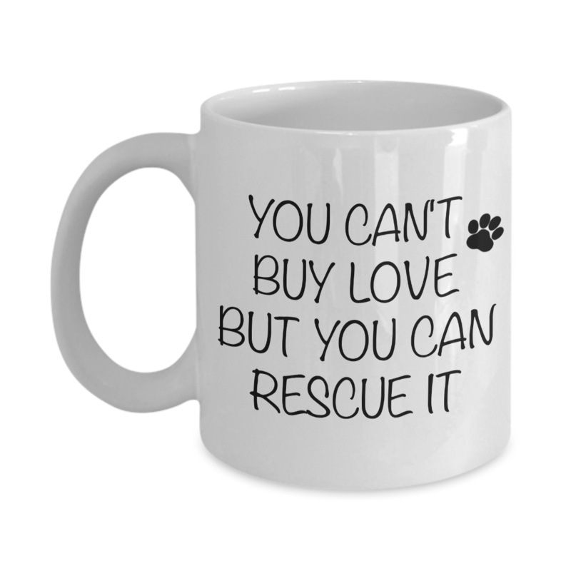 Animal Rescue Mug – You Can’t Buy Love But You Can Rescue It Ceramic Dog Cat Coffee Cup