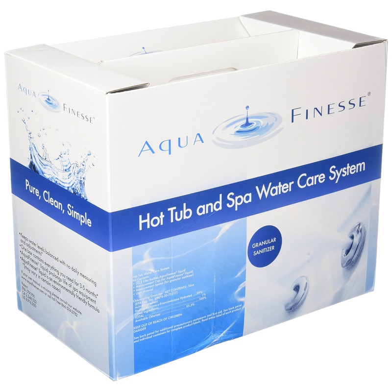 AquaFinesse is a simple, one-step system that makes it easy to keep the water in your spa clean, crystal clear and silky soft. AquaFinesse makes it easy to keep the water in your spa clean, crystal clear and silky soft. Its all-natural ingredients reduce t