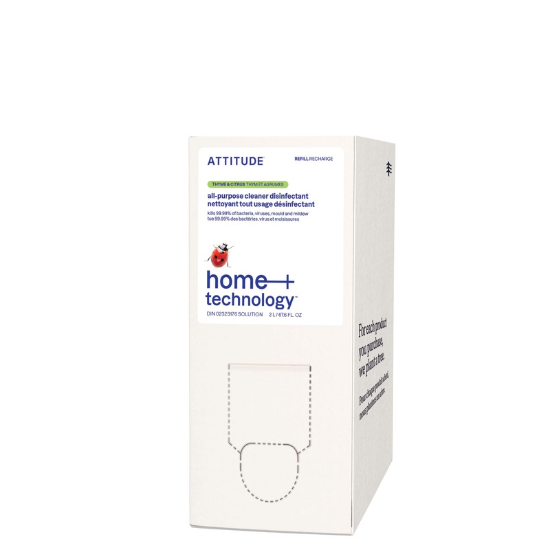 Thanks to its formula containing active disinfectant ingredients and cleaning agents, ATTITUDE all-purpose cleaner disinfectant 99.99 thyme citrus is a must-have for a sparkling clean home. This household essential can be used on most indoor and outdoor surfaces. Infused with an energizing aroma, all-purpose cleaner disinfectant 99.99 eliminates bacteria, germs and viruses. Its citrus fragrance blends perfectly with the earthy and mildly spicy notes of aromatic thyme. It comes in a bottle made from HDPE 2 plasticthe easiest plastic to recycle. This all-purpose cleaner disinfectant is offered in a 2L eco-refill format that’s easy to carry and use at home. Its EWG VERIFIED, vegan and cruelty-free formula keeps your home clean every day.PETA CERTIFIED: 100 vegan and cruelty-free. ECO-FRIENDLY PACKAGING: Eco-refill format that’s easy to carry and use at home. HIGH PERFORMANCE: Eliminates bacteria and viruses from various surfaces.