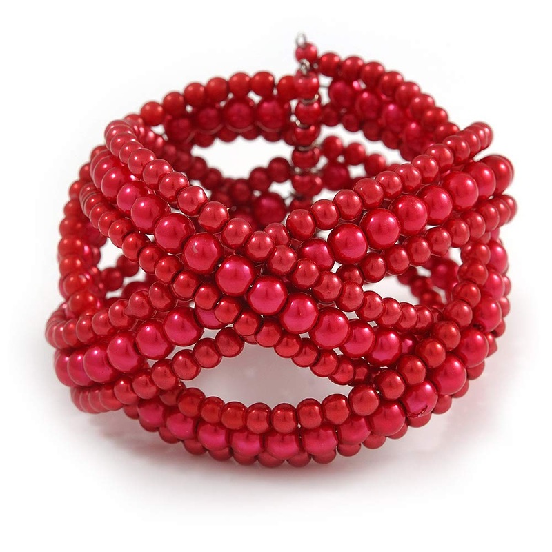 Make a statement with this trendy Red Glass Bead Plaited Flex Cuff Bracelet. Featuring a flex cuff design, made of red round glass beads. All strung on silver tone metal wires, offering a unique style. The open flex design fits most wrist sizes easily and avoids the need for fiddly clasps. It measures about 40mm in width.Length: 17.0cm (6.69″) (min), 20.0cm (7.87″) (max). Wear On: wrist. Type: stretchy. Material: glass. Occasion: casual wear, cocktail party, going to theatre.