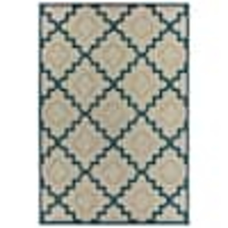 A sophisticated geometric design for indoors or outdoors. Multi-colored yarns in neutral grays and accented by tones of deep navy, add texture and a pop of color underfoot. Machine-woven of polypropylene, this rug is easy to care for by spraying clean with