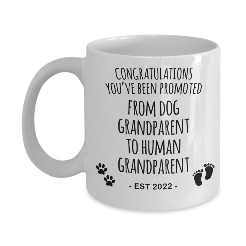 Be the first to review “Baby Announcement Dog Grandparent to Human Grandparent Est 2022 Mug Coffee Cup Funny Gift”