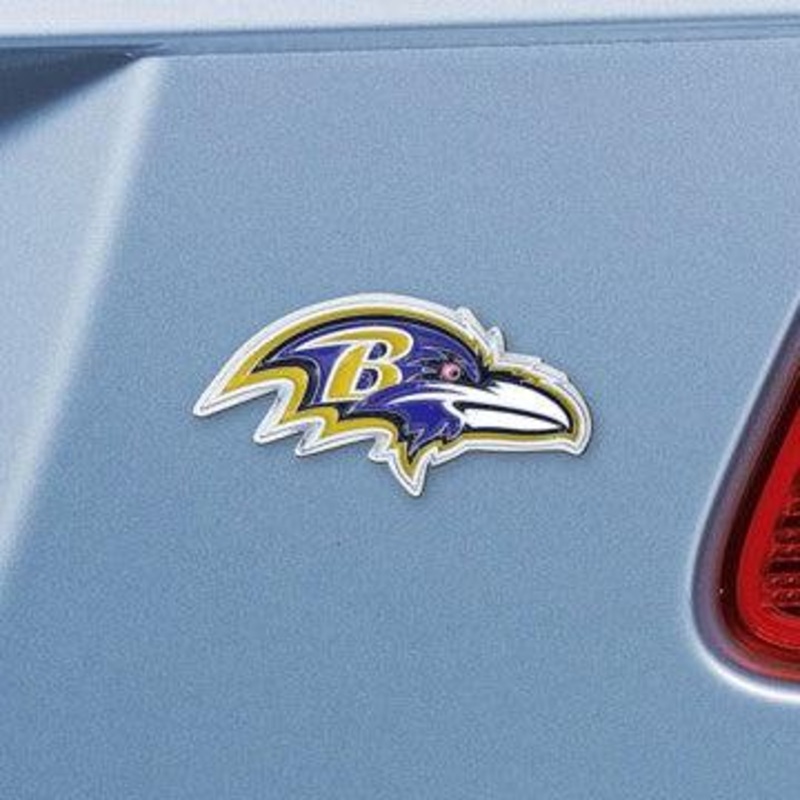 WHOLESALE BALTIMORE RAVENS EMBLEM – CHROME NFL EXTERIOR AUTO ACCESSORY – COLOR EMBLEM – 3.2″ X 3″ SKU: 22533