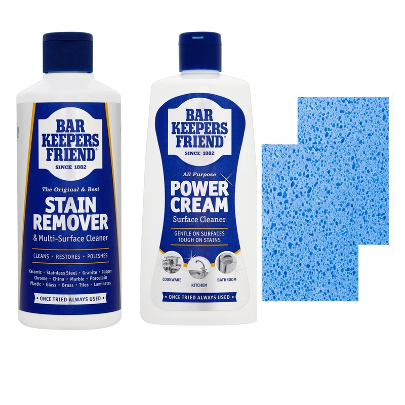 Bar Keepers Friend All Purpose Cleaning Bundle 1X Stain Remover Multi Surface Cleaner Powder 250G 1X All Purpose Power Cream Surface Cleanser 350Ml 2X Washable Sponge WipesProduct type: CLEANING AGENT. Bar Keepers Friend All Purpose Cleaning Bundle 1x Stain Remover Multi Surface Cleaner Powder 250g 1x All Purpose Power Cream Surface Cleanser 350ml 2x Washable Sponge Wipes. Bar Keepers Friend All Purpose Cleaning Bundle 1X Stain Remover Multi Surface Cleaner Powder 250G 1X All Purpose Power Cream Surface Cleanser 350Ml 2X Washable Sponge Wipes.