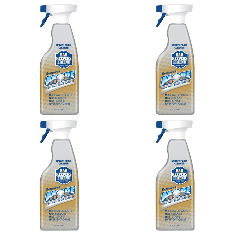 Bar Keepers Friend NEW trigger Spray + Foam Cleaner for Stainless Steel/Tile/Porcelain/Ceramic/Aluminum/Copper/Brass/Chrome/Glass, 25.4 Oz. (4-Pack) 1.58 Pound (Pack of 4)