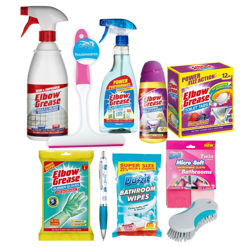 100 CLEANING PROMISE – Here at Sinta Gifts, we are committed to provide practical everyday gifts for home lovers. We are confident you will receive your purchase in pristine condition, however if you are not 100 happy we offer a full money back guarantee. What’s there to loseJust click ‘add to basket’ now !. ULTIMATE HOUSEHOLD CLEANER – Streamline your cleaning tasks with our all-in-one solution, crafted to meet the diverse needs of your household. From floors to ceilings, our bundle provides unparalleled cleaning power, ensuring every surface gleams with freshness and hygiene, making your home a sanctuary of cleanliness and comfort. CLEANING KIT FOR YOUR BATHROOM – Elevate your bathroom cleaning routine with our specially curated set of tools and solutions. Say goodbye to soap scum, limescale, and mildew as you effortlessly restore your bathroom to its pristine glory with our carefully selected products designed for maximum efficacy. ALL IN 1 CLEANING POWER – Experience the ultimate convenience with our comprehensive bundle, featuring everything you need for a spotless home. From tackling tough bathroom grime to dusting every nook and cranny, unleash the power of efficiency and effectiveness in one convenient kit. BATHROOM CLEANING SET CONTENTS – Elbow Grease products – 1x Foaming Toilet Cleaner Berry Blast 500g, 1x Mould Mildew Stain Remover 700ml, 1x Bathroom Rubber Gloves – L 1 pair, 1x Glass Cleaner 500ml, 1x Toilet Tablets – Berry 12pk, 1x Duzzit Micro- Soft Microfiber Cloth 2pk, 1x Scrub Brush, 1x Bathroom Wipes 50pk, 1x Bright Window Squeegie and Sinta Gifts Ballpen.