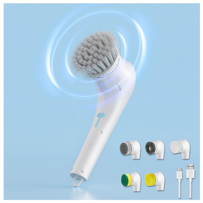 Bathtub Scrubber Electric with 5 Changing Heads Floor Scrubbers USB Charging 360 Vibration Cleaning Handheld Scrubber Kitchen Dishwashing Pan Artifact