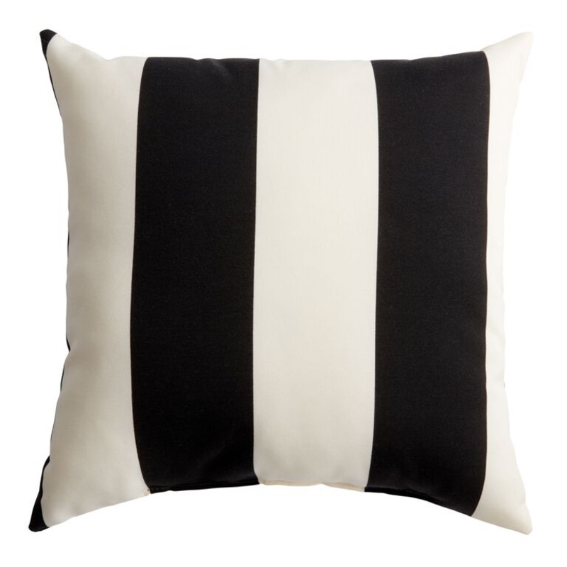 Give your World Market outdoor furniture a plush feel with our exclusive throw pillow featuring a classic awning-stripe pattern in black and white. Made from weather-resistant material designed to resist fading, mold and mildew so it can weather the elements in style, this toss pillow elevates your outdoor area with charming classic ambience and luxury-resort appeal.