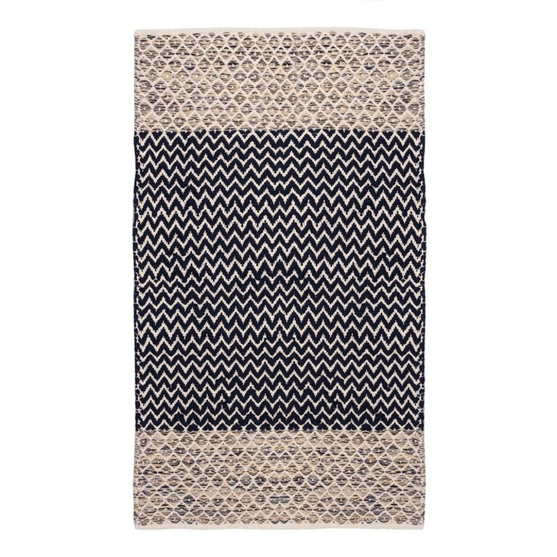 Handwoven by artisans of soft recycled cotton, our 3×5 chindi rug features a graphic black and ivory zigzag design framed by repeating diamonds at both ends. Perfect for kitchens, bathrooms, entryways and bedrooms, this exclusive accent makes a big impact in small spaces.