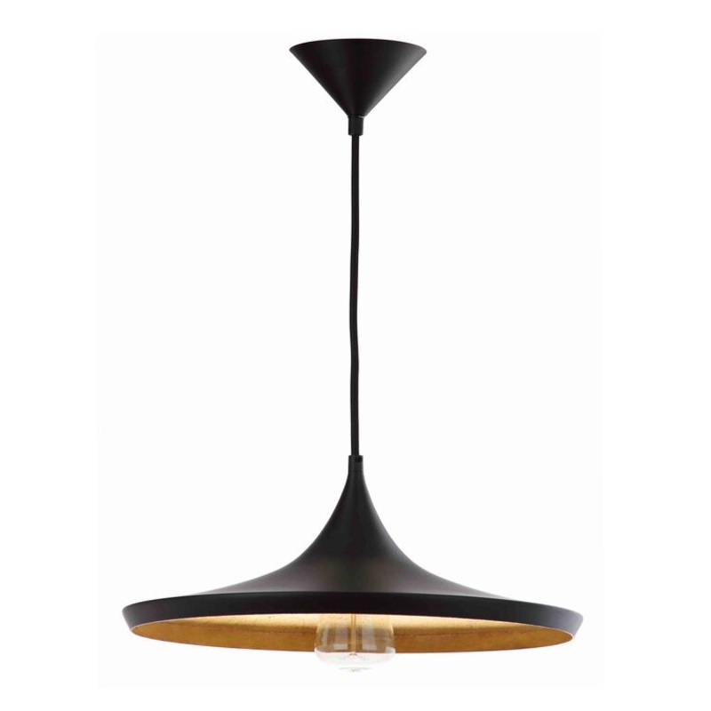 With its sleek, elegant curves, the Bowman pendant lamp from Safavieh exudes understated luxury. Featuring a metal shade with a metallic black finish and contrasting gold interior, this modern hanging light is a sophisticated way to illuminate a room.