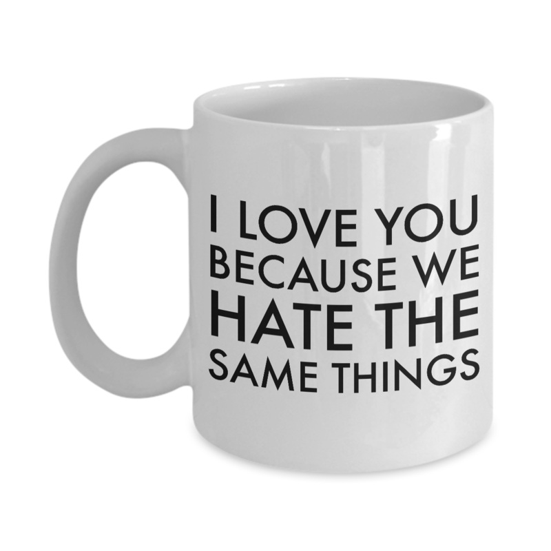 Boyfriend Anniversary Gifts for Your Girlfriend Wife Anniversary Gift Husband Anniversary Gifts I Love You Because We Hate the Same Things Coffee Mug