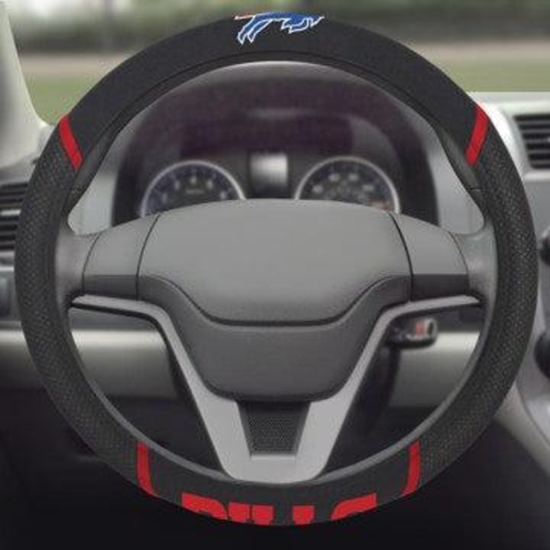 WHOLESALE BUFFALO BILLS STEERING WHEEL COVER NFL UNIVERSAL FIT - 14.5" TO 15.5" SKU: 21362