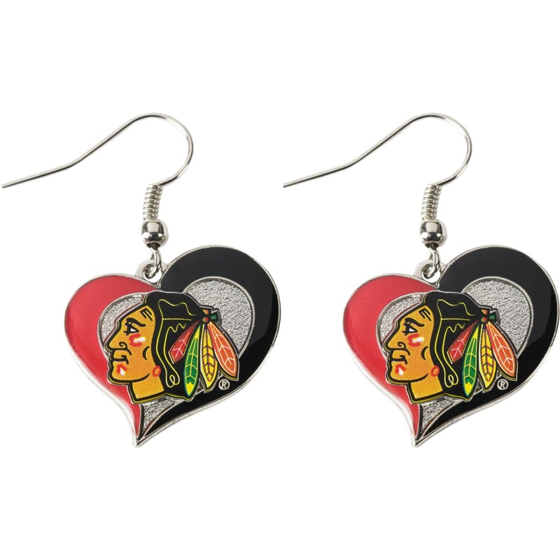 WHOLESALE CHICAGO BLACKHAWKS SWIRL HEART EARRINGS
