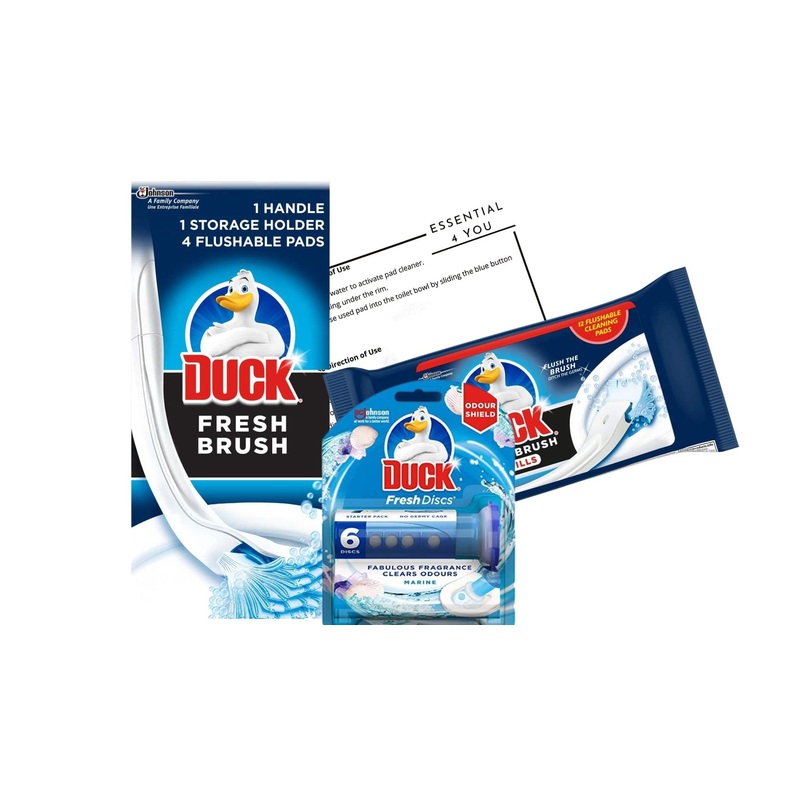 Introducing the Essential You Toilet Duck Disposable Toilet Brush Kit Bundle, the all-in-one solution for keeping your toilet clean and fresh. This bundle includes everything you need to tackle tough stains, bacteria, and odors in your toilet. With a variety of essential cleaning products like bleach thick, toilet unblocker, and eco-friendly toilet cleaner from method cleaning products and ecover, youll have everything you need to keep your bathroom sparkling clean. The Toilet Duck Disposable Toilet Brush is a convenient and hygienic option for cleaning your toilet. The innovative design allows for easy disposal of the brush head after use, meaning no more dirty, germ-ridden brushes taking up space in your bathroom. Plus, with the added Fresh Discs refills, you can enjoy long-lasting freshness with every flush. Whether you prefer traditional bleach cleaners this bundle has something for everyone. Our Essential 4 You bundle has it all. The best toilet cleaner brush, disposable toilet brush refills, and duck fresh discs invest in our top-notch cleaning supplies today!Trusted Brand Quality – Duck Toilet Cleaner, Toilet Duck Fresh Discs and disposable toilet brush is the best solution, the best toilet cleaner and descale toilet cleaner, as good as bleach thick ner. Long-Lasting Freshness – The Toilet Duck Fresh Discs Refills and the disposable toilet brush, easy-to-use toilet duck refills pads. A perfect addition to your bathroom cleaners bleach toilet cleaner. Convenient And Hygienic – The toilet brush disposable system in the Toilet Duck Cleaner Kit eliminates the need to store a used, dirty brush. Simply dispose of the duck brush once you’re done cleaning. Advanced Foaming Cleaner – Our foaming toilet cleaner penetrates and dislodges grime and stains. Forget toilet bleach, The toilet duck brush refills ensure you always have a fresh toilet bowl. Complete Toilet Cleaning Solution – Get a thorough clean with our Toilet Duck Fresh Brush Starter Kit, disposable toilet brush and refills, the best method cleaning products, toilet fresheners.