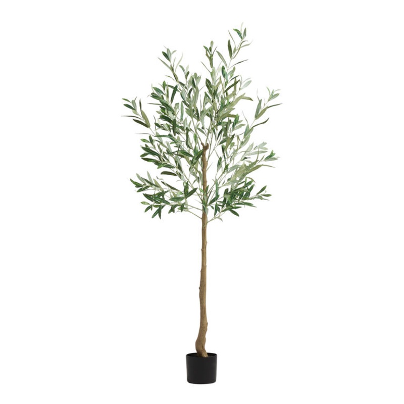 Bring warm Mediterranean vibes to your indoor space in every season with our fruitless faux olive tree. Featuring an abundance of posable artificial branches, it fools the eye with its realistically textured trunk and soft green leaves. Simply potted in a
