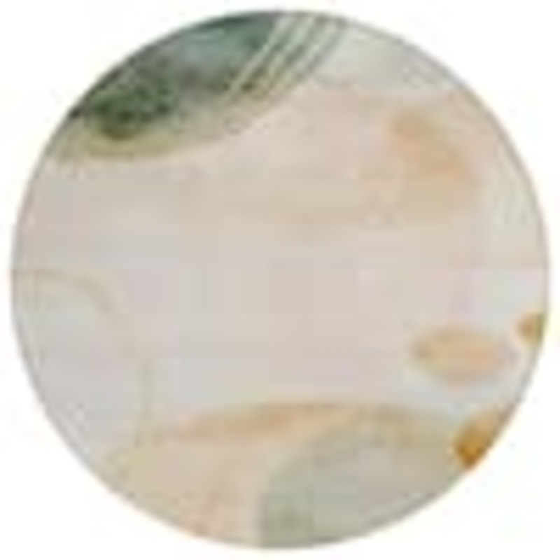Add some artistry to your room with this 8 ft. round beige and green round abstract washable stain resistant non skid indoor outdoor area rug. This geometric round shaped rug features a abstract pattern in beige and green that combines a good looking print with a unique and updated shape. The mix of shape, color, and design gives this rug refreshing visual interest. Ideal for spaces with kids and pets, this rug is stain resistant to help repel stains and spilled liquids. Place this area rug against a hardwood or tile floor and it will enliven your living space with style and sophistication. 96 in. H x 96 in. W x 0.19 in. D.