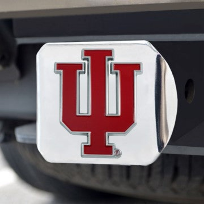 WHOLESALE INDIANA HITCH COVER INDIANA UNIVERSITY COLOR EMBLEM ON CHROME HITCH COVER 3.4"X4" - "IU" LOGO SKU: 25028