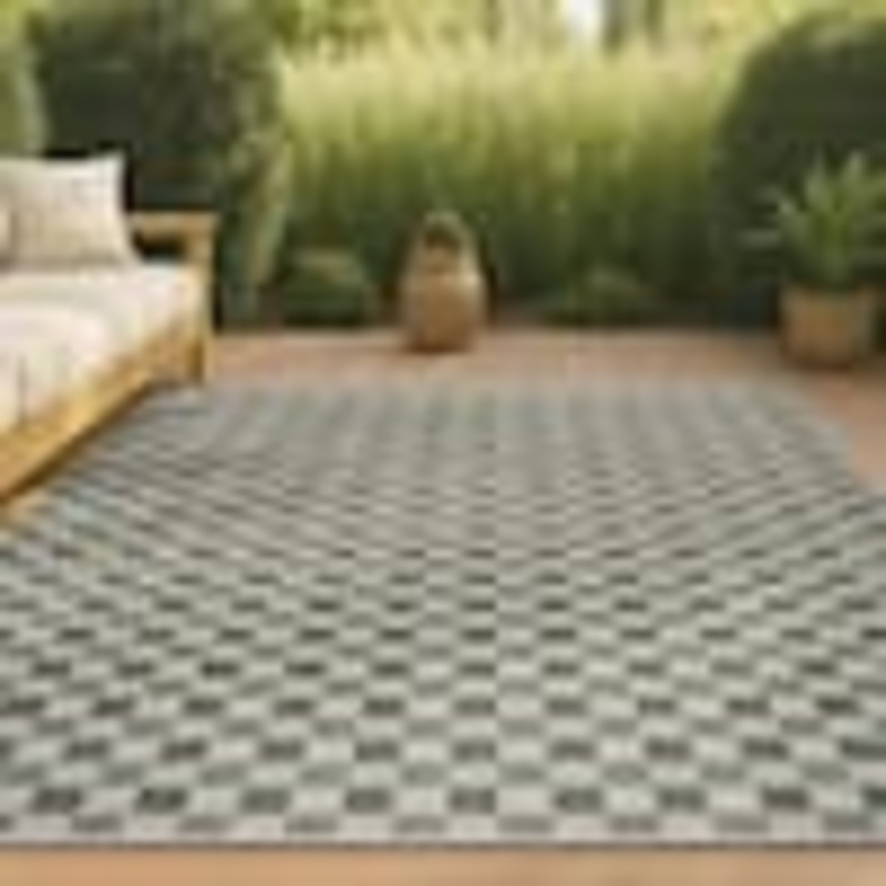 Our casual update to the classic checkerboard is inspired by traditional cottage designs. This rug is made from durable synthetic fibers woven into a small checked pattern. Use our easy-care rug outdoors on a porch, or in the bedroom, living room or dining room.