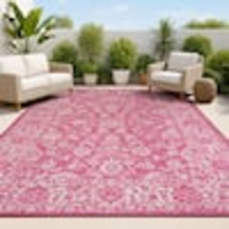 With a vine-and-border design inspired by Persian rugs, our Boho-chic rug adds eclectic style to an outdoor porch or patio. Varied tones of red mingled with a cream pattern give this rug a hand-woven, vintage vibe. The flatweave design is great for high-traffic spaces indoors too.