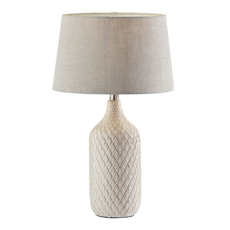 This set of Kathryn table lamps by Adesso adds instant character to your space with ceramic diamond-textured bases and an off-white, gray and tan glaze. Topped with taupe fabric drum shades that diffuse welcoming light about your space, these versatile lamps round off an entryway table or set of nightstands with striking symmetry.