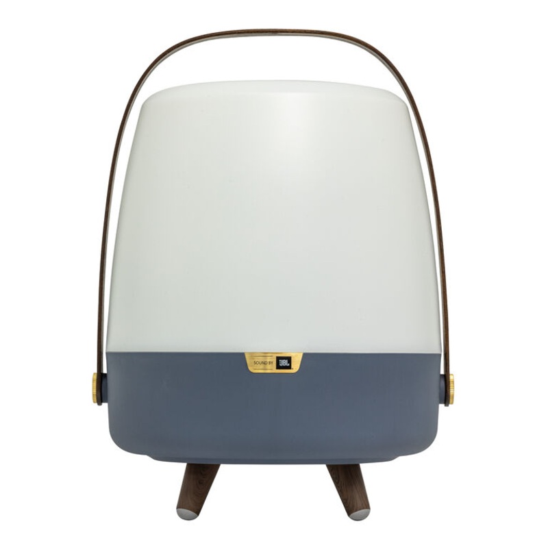 Kooduu fused elegant Danish lamp design with the powerful bass of SOUND BY JBL audio to create the Lite-Up Play indoor-outdoor LED speaker light. This portable stereo lamp adjusts to five brightness levels and its full-range speaker delivers your Bluetooth playlist with 10 watts of immersive SOUND BY JBL audio. Featuring a wood handle and brass hardware, this light-up speaker presents its Scandi aesthetic in your choice of accent colors.