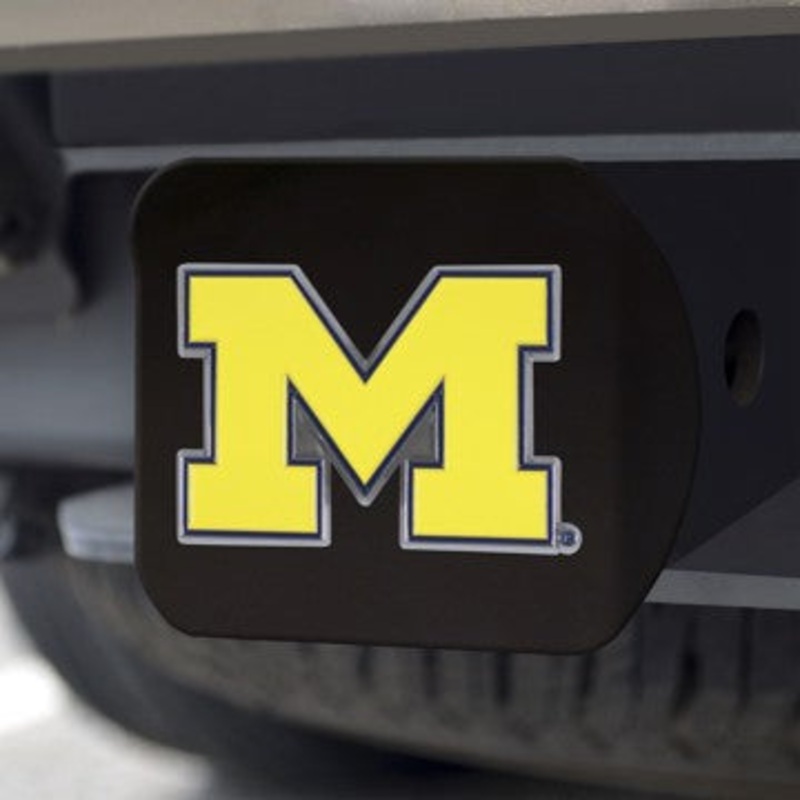 WHOLESALE MICHIGAN HITCH COVER UNIVERSITY OF MICHIGAN COLOR EMBLEM ON BLACK HITCH 3.4"X4" - "BLOCK M" LOGO SKU: 22706