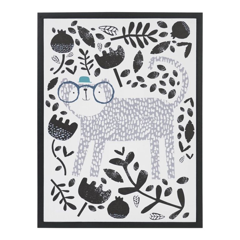 Take a walk on the wild side with this irresistible black, gray and white animal canvas wall art. Featuring a hat-sporting bespectacled monkey surrounded by a garden of whimsical flowers, this lighthearted wall decor uplifts any playroom, nursery or bedroo