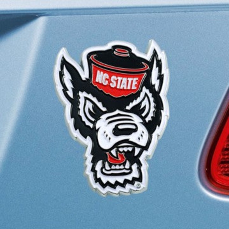 WHOLESALE NC STATE EMBLEM NORTH CAROLINA STATE UNIVERSITY COLOR EMBLEM 3"X3.2" - "WOLF HEAD" LOGO SKU: 25586