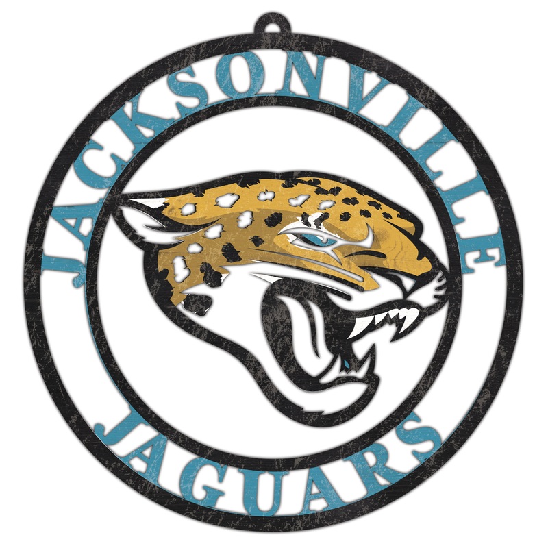 WHOLESALE NFL2114-TEAM COLOR CUTOUT DOOR HANGER / N2114-JACKSONVILLE JAGUARS