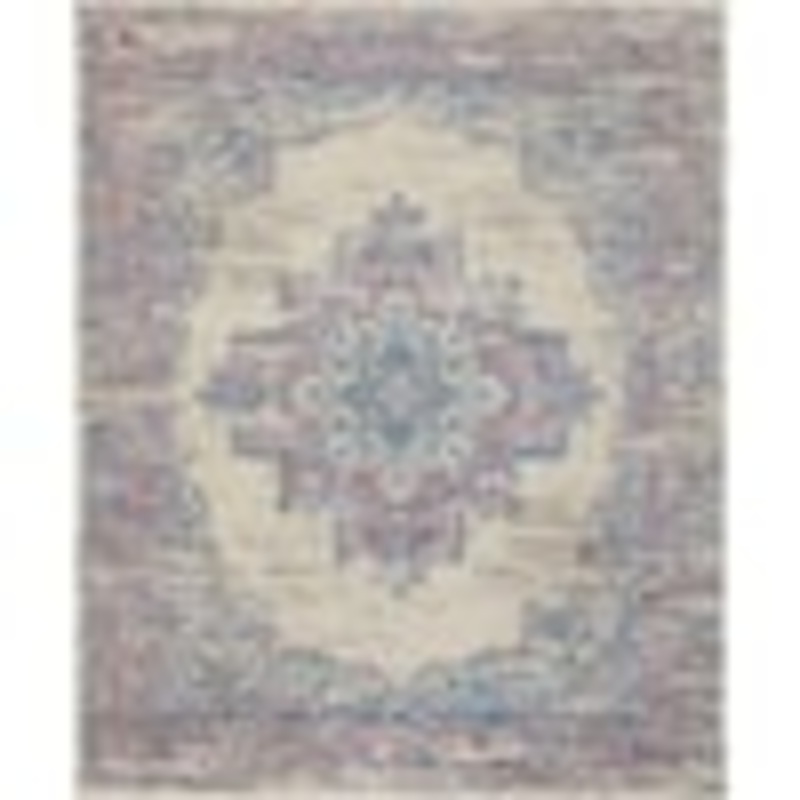 In soothing shades of pink and ivory with subtle blue accents, this brilliantly-bordered, central medallion Grafix area rug from Nourison will elevate the elegance quotient of any room. Masterfully power loomed from a silky and ultra-hardy polypropylene for a lavish feel, long wear, and low maintenance.