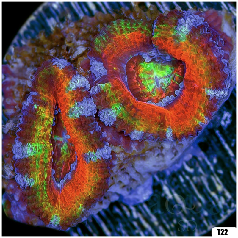Acans are an LPS coral that come in a wide variety of colors and patterns. Acans are a fairly easy to care for coral. They require low to moderate light, low to moderate flow and appreciate an occasional feeding.